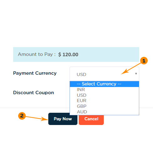 Currency Options: On the payment page, you'll have the option to choose your preferred currency. If you're using a Credit or Debit card, the available currency options will depend on the supported currencies by your card issuer or bank. Select the appropriate currency from the list.